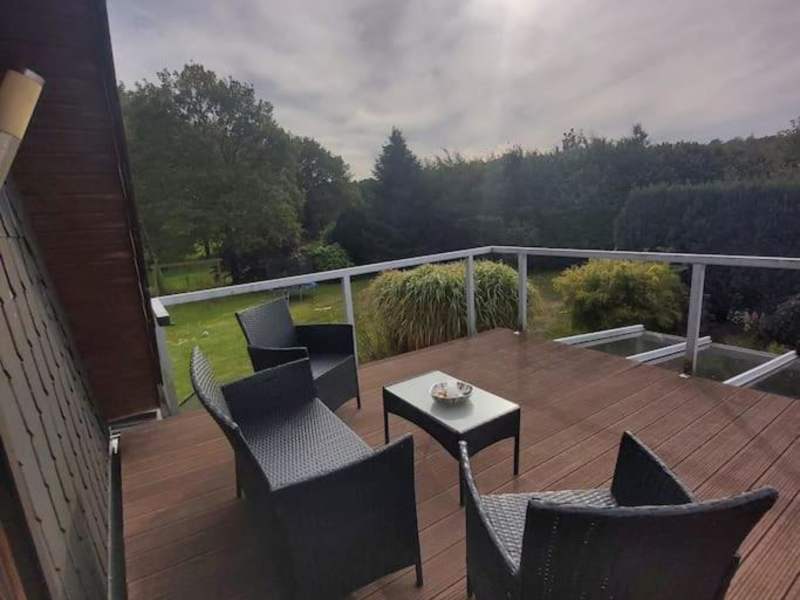 Das Apartment im Obergeschoss überzeugt durch einen Balkon und eine Terrasse, die eine angenehme Atmosphäre für die Gäste schaffen. Es stehen Übernachtungsmöglichkeiten bereit, die gut geeignet sind für entspannte Ferien in der Natur.