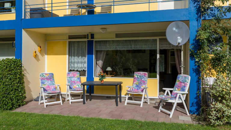 Das Apartment eignet sich ideal für Feriengäste, die eine heimelige Unterkunft in Strandnähe suchen. Es gibt zudem eine Terrasse.