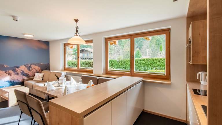 Die Ferienwohnung bietet eine heimelige Atmosphäre mit einer Terrasse und Blick auf die Berge. Sie verfügt über ein Schlafzimmer, ein Wohnzimmer mit TV und eine gut ausgestattete Küche, die mit einem Kühlschrank und Geschirrspüler ausgestattet ist. Zusätzlich sind Handtücher und Bettwäsche vorhanden. Vor Ort gibt es einen Abstellraum für Skier.