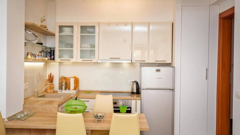 Das Apartment umfasst 2 Schlafzimmer, ein Wohnzimmer und eine voll ausgestattete Küche mit Kühlschrank und Wasserkocher. Des Weiteren gibt es ein Badezimmer mit Dusche und Haartrockner. Handtücher und Bettwäsche werden bereitgestellt.