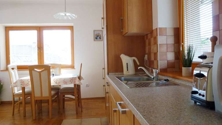 Das Apartment verfügt über ein Schlafzimmer, ein Wohnzimmer mit einem Flachbild-TV, eine gut ausgestattete Küchenzeile mit Kühlschrank und Geschirrspüler sowie ein Badezimmer mit Dusche. Von der Veranda/Pergola hat man einen schönen Bergblick. Handtücher und Bettwäsche werden bereitgestellt.
