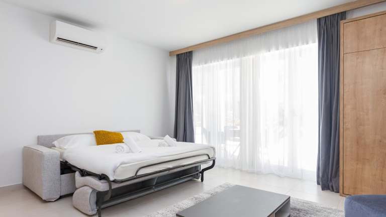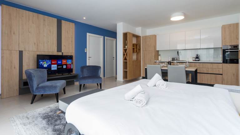 Die Ferienwohnung verfügt über ein Schlafzimmer, ein Wohnzimmer, eine voll ausgestattete Küche mit Kühlschrank und Kaffeemaschine sowie ein Badezimmer mit Dusche und kostenlosen Pflegeprodukten. Zu den Annehmlichkeiten zählen Klimaanlage, Schallisolierung, Handtücher und Bettwäsche.