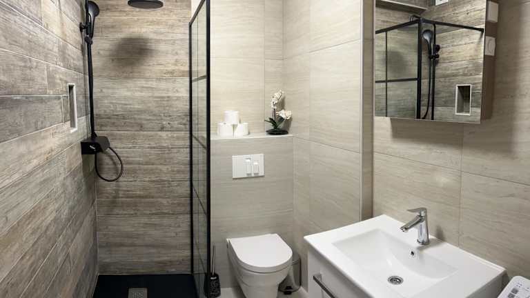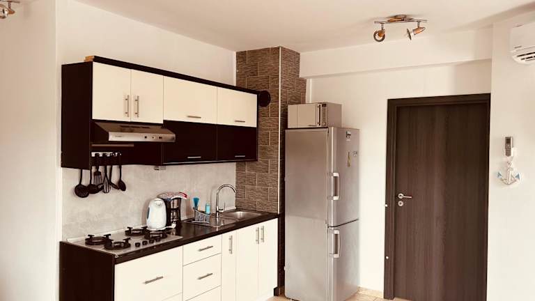 Das Apartment beinhaltet zwei Schlafzimmer, ein Wohnzimmer mit Flachbild-TV, eine gut ausgestattete Küche mit Kühlschrank und Ofen sowie ein Badezimmer mit Dusche. Die Unterkunft stellt auch Handtücher und Bettwäsche zur Verfügung.