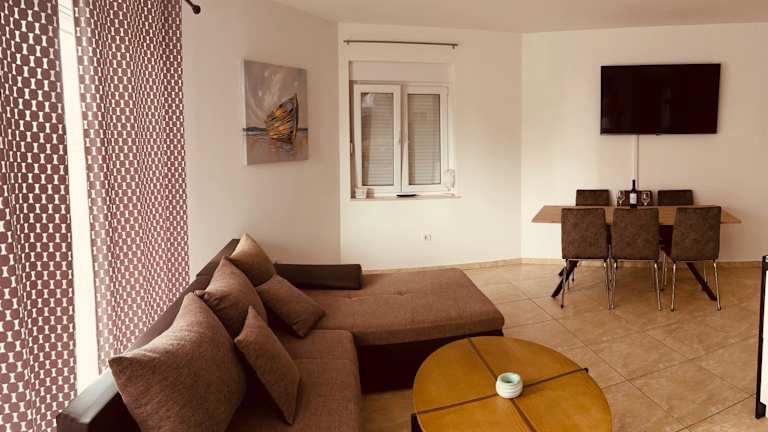 Das Apartment Karlo bietet eine gemütliche Ferienwohnung mit Meerblick. Die Unterkunft verfügt über eine Terrasse, zwei Schlafzimmer, ein Wohnzimmer sowie eine gut ausgestattete Küche. Im Apartment sind Handtücher und Bettwäsche vorhanden. Zudem sind die Übernachtungsmöglichkeiten klimatisiert und bieten einen Balkon.