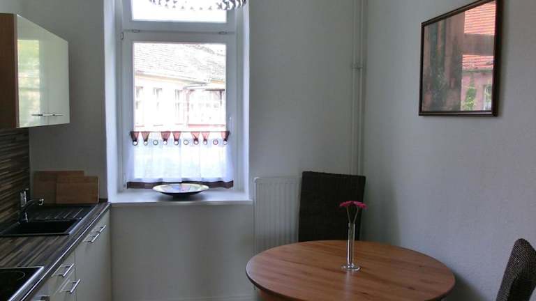 Die Ferienwohnung bietet ein Schlafzimmer und ein Wohnzimmer sowie eine voll ausgestattete Küche. Die Unterkunft stellt auf Wunsch kostenfrei Babybett, Hochstuhl und Töpfchen zur Verfügung. Gäste dürfen mitgebrachte Haustiere nicht mitbringen, da diese in der Unterkunft nicht gestattet sind. Eine familienfreundliche Ausstattung ist ebenfalls vorhanden.