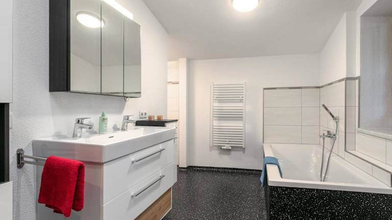 Die Ferienwohnung bietet Platz in 3 Schlafzimmern und einem gemütlichen Wohnzimmer. Sie ist ausgestattet mit einem Satelliten-Flachbild-TV, einer gut ausgestatteten Gemeinschaftsküche und einem Badezimmer, das über eine Dusche sowie eine Badewanne verfügt. Handtücher und Bettwäsche werden bereitgestellt.