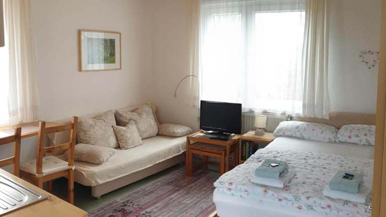 Das Apartment verfügt über ein Schlafzimmer und ist mit einem Flachbild-Sat-TV ausgestattet, der Ihnen Unterhaltung bietet. Die Küchenzeile ist komplett ausgestattet mit einer Mikrowelle und einem Kühlschrank, so dass Sie Ihre eigenen Mahlzeiten zubereiten können. Das Badezimmer verfügt über eine Dusche.