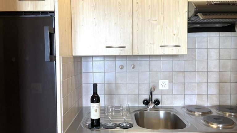 Das Apartment bietet eine Küchenzeile zur Selbstversorgung, ausgestattet mit den notwendigen Geräten zur Zubereitung von Mahlzeiten. Es ist gemütlich und bietet Annehmlichkeiten für einen angenehmen Aufenthalt.