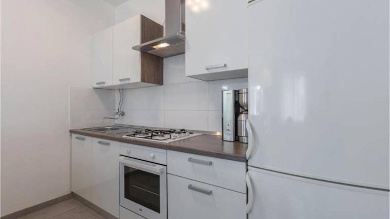 Eine voll ausgestattete Küche ist vorhanden, die mit einem Kühlschrank und einer Kaffeemaschine ausgestattet ist. Genügend Platz zum Zubereiten von Mahlzeiten ist gegeben, jedoch keine Informationen zu speziellen Verpflegungsmöglichkeiten.