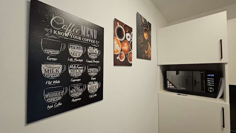 In der gut ausgestatteten Küchenzeile können Gäste selbstständig Mahlzeiten zubereiten. Essenslieferungen in die Unterkunft sind möglich.