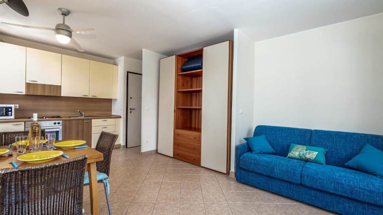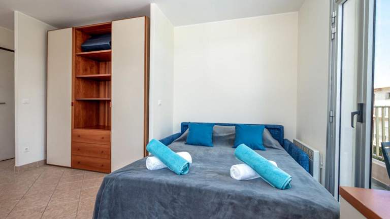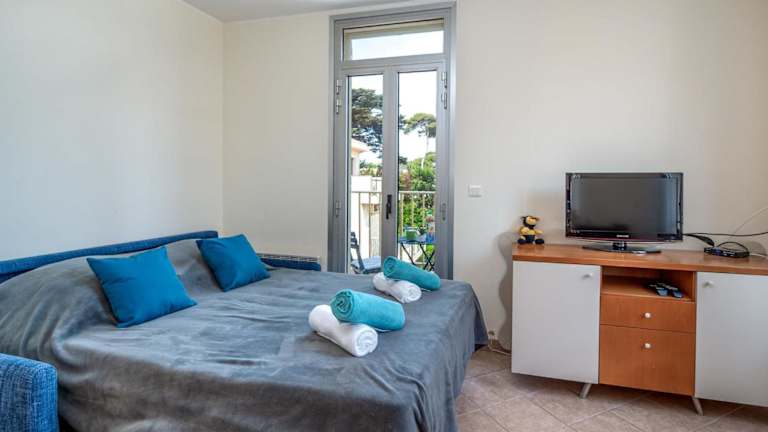 Das Apartment verfügt über ein separates Schlafzimmer, ein Wohnzimmer und eine voll ausgestattete Küche mit Kühlschrank und Ofen. Ein Badezimmer ist ebenfalls vorhanden. Die Bereitstellung von Handtüchern und Bettwäsche ist gegen Gebühr möglich, zudem kann ein Babybett auf Anfrage bereitgestellt werden.