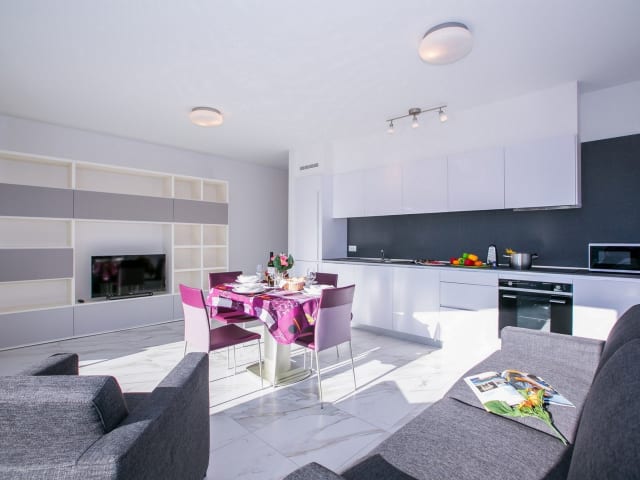 Stellen Sie sich vor, Sie machen Urlaub in dieser fabelhaften Wohnung mit einem Schlafzimmer für 4 Personen in Lugano! Leicht erreichbar und ideal für Aufenthalte das ganze Jahr über und für sorglose Städtereisen bietet diese großzügige, offene Wohnung eine moderne Basis, um das Beste aus dieser Weltklasse-Seestadt zu machen. Intern profitiert diese Wohnung von einer Fußbodenheizung, einem Flachbild -TV, einer voll ausgestatteten Küche mit Essbereich und einem sonnigen, privaten Balkon. Flexible Schlafmöglichkeiten können mit dem schicken Doppelzimmer mit Zugang zum Balkon und einem Doppelschlafsofa im Wohnraum ebenfalls genossen werden. Ein schickes Bad und eine Waschküche sind auch vorhanden und die Residenz selbst profitiert von einem Aufzug, Parkplätzen und einem Fitness-Studio. Das moderne 7-stöckige Gebäude bietet unmittelbare Nähe zu einer Vielzahl an lokalen Annehmlichkeiten wie dem schönen Parco Civico, dem Freibad und Tennis Club (11 Minuten zu Fuß entfernt) und auch das pulsierende, moderne See-Zentrum von Lugano, wo Geschäfte, kulturelle Sehenswürdigkeiten, Universitäten, Hochschulen und Geschäftsbereiche warten. Die schöne Stadt Lugano bietet den perfekten Rahmen für einen kosmopolitischen Rückzug am See mit mondänen Restaurants, Designerläden, kulturellen Museen, Kunstgalerien, Sportaktivitäten, einem pulsierenden Nachtleben und vielen Attraktionen vor der Haustür. Diese Annehmlichkeiten werden durch atemberaubende Tessiner Wanderrouten, nahe gelegene Skigebiete und große Seeattraktionen ergänzt, welche in der umliegenden Schweizerisch-Italienischen Seenregion existieren. Lugano ist mit dem Zug, der Fähre, dem Bus, Flugzeug und Auto leicht zu erreichen, mit einem zentralen Bahnhof im Zentrum, Lugano Flughafen (21 Autominuten), häufigen öffentlichen Verkehrsverbindungen und schneller Verkehrsanbindung an den Comer See (40 Minuten entfernt). Entspannung Offenes Wohnzimmer • Ein kühles und modernes Interieur mit Zugang zum Balkon • Ausgestattet mit einem schicken Sofa und stilvoller Küche • Flachbild -TV, Fußbodenheizung und die Möglichkeit ein WIFI-Gerät zu mieten (für 35 Euro) Essen Offene Küche • Eine intelligente, moderne Küche mit einem Herd, Backofen, Mikrowelle, Wasserkocher, Kaffeemaschine, Kühlschrank mit Gefrierfach und Geschirrspüler. • Der schicke Essbereich für 4 Personen befindet sich im sonnigen, schicken Wohnraum • Nähe zu einer Vielzahl an lokalen Restaurants Schlafen Die moderne Wohnung ist perfekt für ein Paar oder eine flexible Familiengruppen von 4+ Personen geeignet. Hauptschlafzimmer • Ein elegantes und geräumiges Schlafzimmer mit Zugang zum Balkon • Verfügt über ein Doppelbett und Kleiderschrank Extra • ein Doppelschlafsofa im Wohnraum, sollten 1-2 weitere Gäste bleiben wollen • Für größere Gruppen gibt es extra Kinderbetten und Erwachseneneinzelfeldbetten, die auch gemietet werden können (gegen Gebühr) Baden Badezimmer 1 • Ein modernes Badezimmer mit einer Badewanne, Dusche, Waschbecken, WC und Bidet Zusätzlich Neben Fußbodenheizung und Zentralheizung bietet die Wohnung weitere Vorteile, wie die private Waschküche. Gegen einen Aufpreis kann auch ein WIFI-Gerät zur Verfügung gestellt werden. Die Wohnung im 4. Stock kann gemütlich über einen Aufzug erreicht werden. Das moderne 7-stöckige Gebäude profitiert ebenfalls von einem exklusiven Fitness-Studio. Parken Es gibt hier eine Garage die unsere Gäste nutzen können. Lage Die Urlaubswohnung liegt in einem modernen, zentral gelegenen Gebäude. Mit seiner Lage ist es für Gäste einfach, die touristischen Attraktionen, Bildungseinrichtungen, Verkehrsverbindungen und Geschäftszentren von Lugano zu erreichen. Die Wohnung, mit ihrer beneidenswerten Lage liegt nur 7-10 Minuten zu Fuß von Luganos beliebtem Freibad, seinem schönen See, dem Parco Civico mit Kunstmuseum und einer Vielzahl an Designer-Läden, Restaurants, schicke Bars und kulturellen Sehenswürdigkeiten. Lugano ist ein Paradies für Shopper und bietet Designer-Einkaufsstraßen, Antiquitätenläden, traditionelle Märkte und moderne Einkaufszentren. Beliebte Attraktionen und Aktivitäten sind auch Ausflüge in das Museo Civico di Belle Arti, das Museo Cantonale d'Arte, das Museo Cantonale di Storia Naturale, das familienfreundliche Freibad di Lugano, zum Tennisclub, zur Cattedrale di San Lorenzo und eine Fülle an umliegenden Wanderwegen (einschließlich Monte Bré und entlang des Olive Trail von Gandria Lugano), charmante, von Cafés umsäumte Plätze, idyllische Uferpromenaden, Panoramablicke und malerische Bootsfahrten, welche auch eine zusätzliche Dosis italienischer Romantik bieten. Dies sorgt für einen wirklich einzigartigen und entspannten Aufenthalt in der Schweizer Seestadt. Lugano ist sehr gut mit seinen Fähren, Bussen, Straßen, Bahnen und Flughafenverbindungen angeschlossen. Die Wohnung selbst ist nur eine 5-minütige Fahrt mit dem Taxi vom Lugano Hauptbahnhof und 15 Minuten Taxifahrt vom Flughafen Lugano entfernt, somit ist es die perfekte Wahl für diejenigen, die versuchen, das Auto zu Hause zu lassen. Wenn Sie mit dem Auto reisen, bietet die stilvolle Wohnung einen eigenen Parkplatz. Der Golf Club, die vielen touristischen Attraktionen im Tessin und der schöne, zentrale Comer See (mit Menaggio, das mit dem Auto nur 45 Minuten entfernt liegt) sind mit dem Auto leicht zu erreichen.