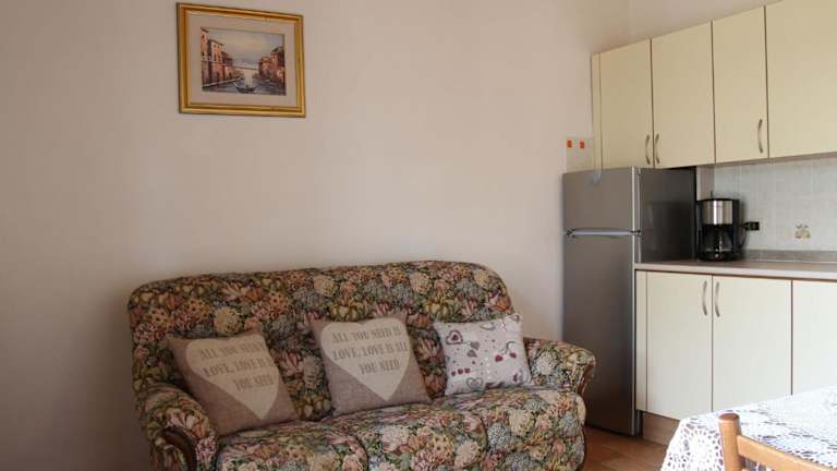 Die Ferienwohnung umfasst 1 Schlafzimmer und eine voll ausgestattete Küche mit Kühlschrank. Ein Badezimmer mit Bidet und Dusche ist ebenfalls vorhanden. Die Unterkunft verfügt über einen TV mit Satellitenkanälen.