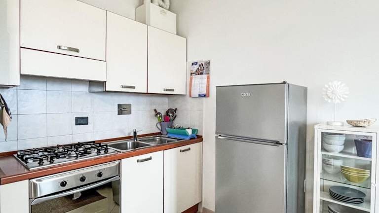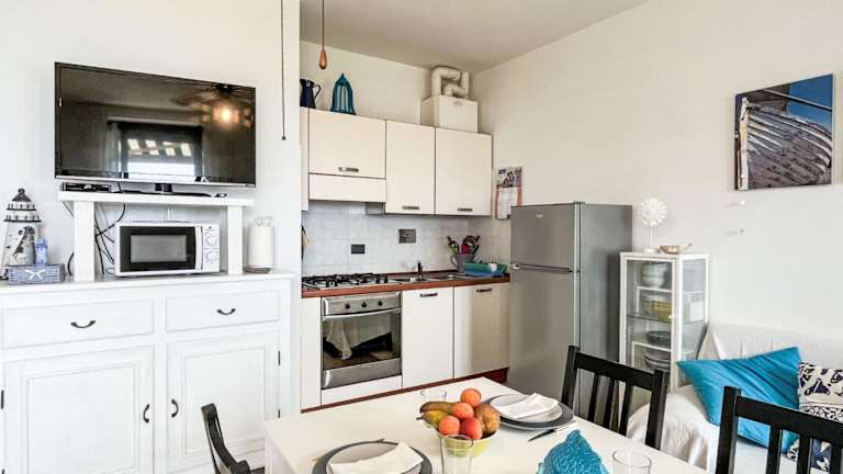 Das Apartment besteht aus einem Schlafzimmer sowie einem Wohnzimmer. Eine voll ausgestattete Küche mit Kühlschrank und Kaffeemaschine ist vorhanden. Das Badezimmer verfügt über ein Bidet und eine Dusche.