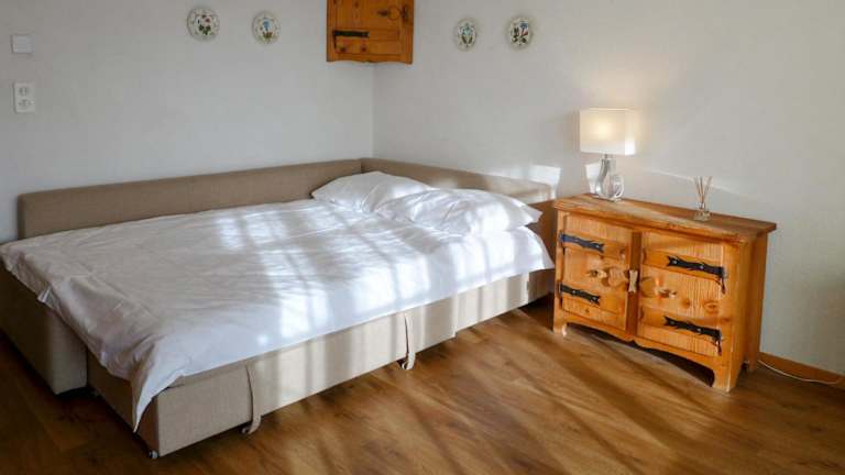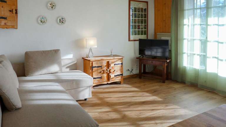 Die Ferienwohnung umfasst 1 Schlafzimmer, ein Wohnzimmer mit TV und eine gut ausgestattete Küche, die einen Kühlschrank und Geschirrspüler bietet. Ein Badezimmer mit Bidet ergänzt die Ausstattung. Ein kostenloses Zustellbett ist erhältlich.