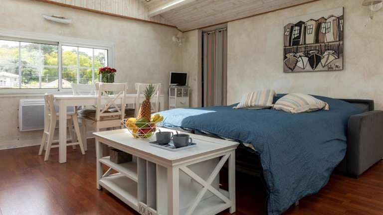 Die Ferienwohnung besteht aus einem Schlafzimmer und einem Wohnzimmer. Die Ausstattung umfasst ein Badezimmer mit Badewanne oder Dusche und einen Haartrockner. Ein TV ist ebenfalls vorhanden. Handtücher und Bettwäsche können gemietet werden, oder Gäste bringen ihre eigenen mit.
