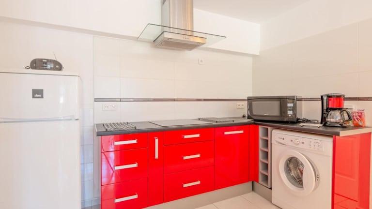 Die Ferienwohnung ist ausgestattet mit einer Küche, die einen Kühlschrank und Geschirrspüler beinhaltet, sowie 1 Badezimmer mit einer Dusche, Haartrockner und Waschmaschine. Ein TV ist ebenfalls vorhanden.