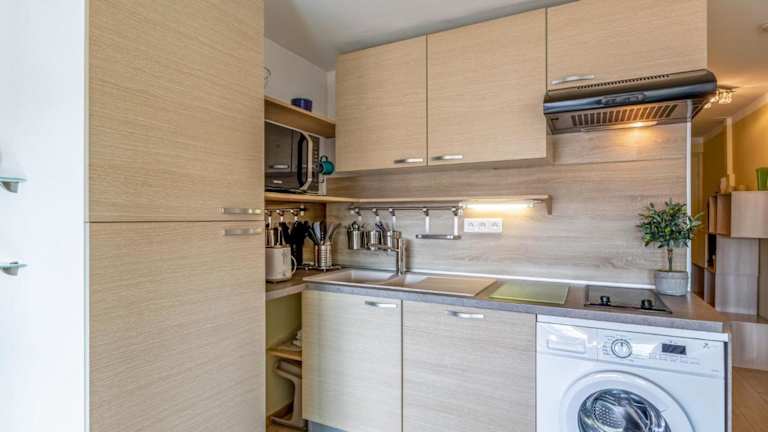 Die Ferienwohnung besteht aus 1 Schlafzimmer, einem Wohnzimmer, einer voll ausgestatteten Küche mit Kühlschrank und Kaffeemaschine sowie einem Badezimmer mit Dusche und Haartrockner. Zur Ausstattung gehört zudem ein Flachbild-TV. Handtücher und Bettwäsche können gegen Gebühr gemietet werden oder Gäste können eigene mitbringen. Ein Babybett ist ebenfalls verfügbar, jedoch können Gebühren anfallen.