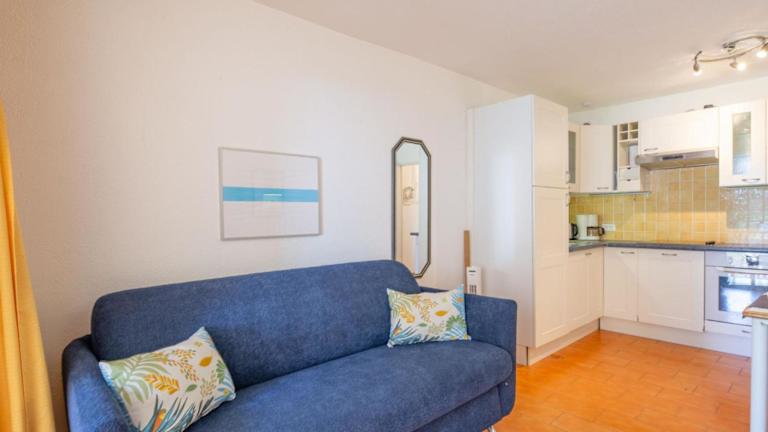 Das Apartment beinhaltet ein Schlafzimmer, ein Wohnzimmer sowie eine gut ausgestattete Küchenzeile mit Kühlschrank und Geschirrspüler. Das Badezimmer ist mit einer Dusche ausgestattet. Eine Terrasse mit Blick auf das Meer ergänzt die Bequemlichkeit des Apartments.