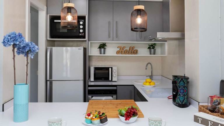 Die Ferienwohnung besteht aus einem Schlafzimmer, einem Wohnzimmer und einer voll ausgestatteten Küchenzeile mit Kühlschrank und Kaffeemaschine. Ein Bad mit Bidet und Haartrockner ist ebenfalls vorhanden. Zur Unterhaltung steht ein TV zur Verfügung. Klimaanlage sorgt für die nötige Bequemlichkeit. Bettwäsche, Handtücher und Wäsche werden nach den Richtlinien der örtlichen Behörden gewaschen.