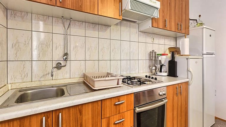 In der voll ausgestatteten Küche der Ferienwohnung haben Gäste die Möglichkeit, verschiedene Gerichte zuzubereiten. Zusätzlich wird in der Unterkunft ein Grill angeboten, um die Mahlzeiten im Freien zu geniessen. Es werden auch Obst und andere Leckereien bereitgestellt.