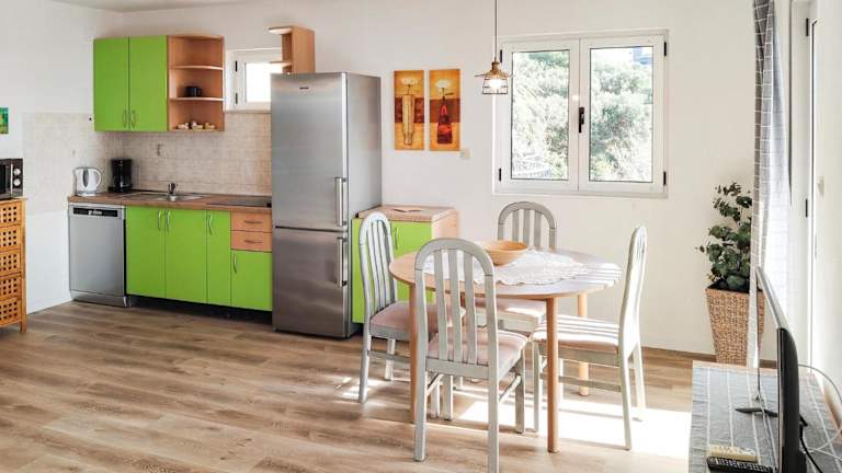 Die Unterkunft verfügt über eine voll ausgestattete Küche mit Kühlschrank und Kaffeemaschine, ideal für die Selbstverpflegung. Grillmöglichkeiten sind ebenfalls vorhanden.