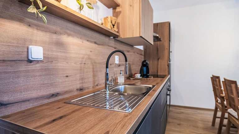 Die Ferienwohnung besteht aus einem Schlafzimmer, einem Wohnzimmer und einer voll ausgestatteten Küchenzeile, die mit einem Kühlschrank und einer Kaffeemaschine ausgestattet ist. Zudem verfügt die Unterkunft über ein Badezimmer mit einer Dusche und eine Terrasse.