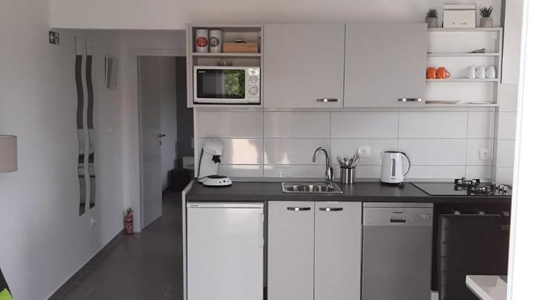 Die Ferienwohnung besteht aus 1 Schlafzimmer und einem Wohnzimmer. Sie ist klimatisiert und verfügt über eine voll ausgestattete Küche mit Kühlschrank und Kaffeemaschine. Das Badezimmer ist mit einer Dusche und einem Haartrockner ausgestattet. Handtücher und Bettwäsche werden bereitgestellt.