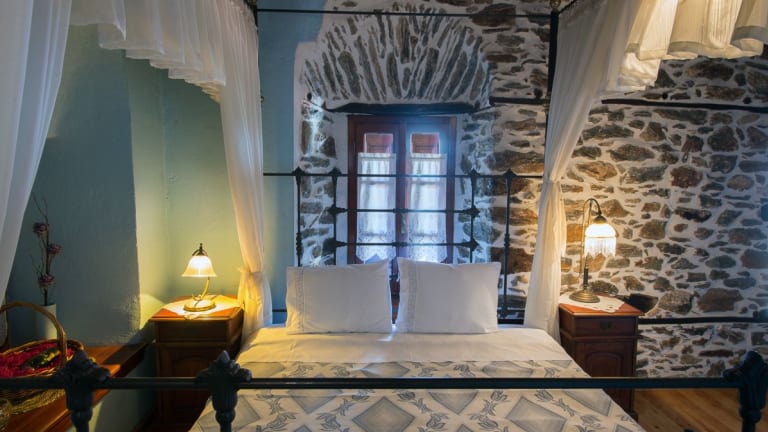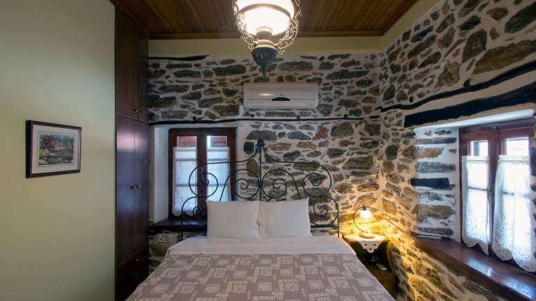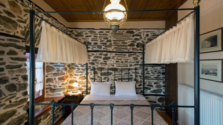 Die Zimmer im Terpou Mansion sind traditionell eingerichtet und verfügen über klimatisierte Räume mit Steinwänden und Holzdecken. Die Zimmer sind mit gemütlichen Eisenbetten und Vorhängen mit Spitzendetails ausgestattet. Jedes Zimmer verfügt über Heizung und einen Fernseher. Genießen Sie den Blick auf den Berg Pilion von Ihrem eigenen Balkon aus.