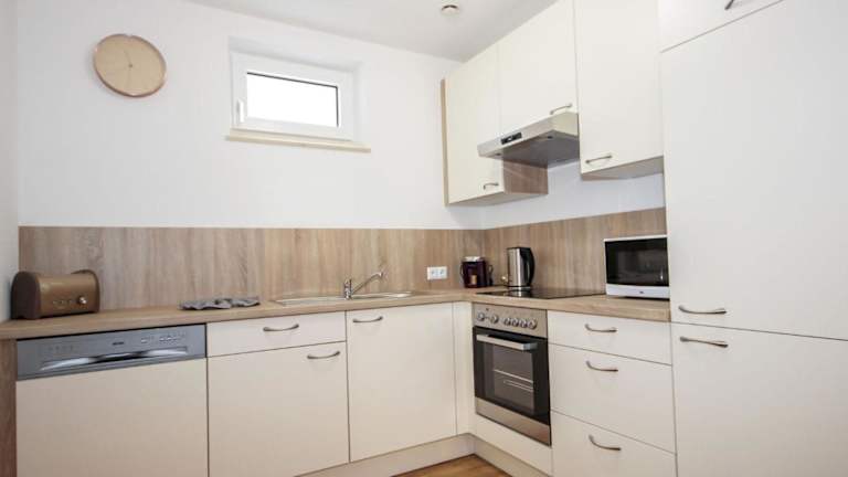 Die Wohnung umfasst ein Schlafzimmer, ein Wohnzimmer mit einem TV mit Satellitenkanälen, eine voll ausgestattete Küche mit Kühlschrank und Geschirrspüler sowie ein Badezimmer mit Dusche.