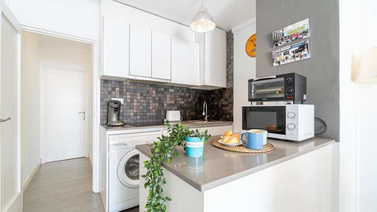 Die Ferienwohnung besteht aus einem Schlafzimmer, einem Wohnzimmer und einem Badezimmer mit Dusche und Haartrockner. Zur Ausstattung zählen eine Klimaanlage, eine voll ausgestattete Küche mit Kühlschrank und Kaffeemaschine sowie Schallisolierte Zimmer. Handtücher und Bettwäsche können gegen Aufpreis angeboten werden.