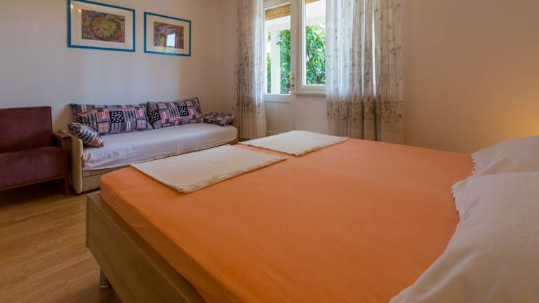 Das Apartment Mia bietet Ihnen komfortable Unterkünfte mit 2 Schlafzimmern. Das Apartment ist klimatisiert und verfügt über einen Balkon, auf dem Sie entspannen und die Aussicht genießen können. In der voll ausgestatteten Küche finden Sie einen Kühlschrank und einen Backofen. Handtücher und Bettwäsche werden gestellt, und Sie haben Zugang zu Sat-TV und kostenfreiem WLAN.