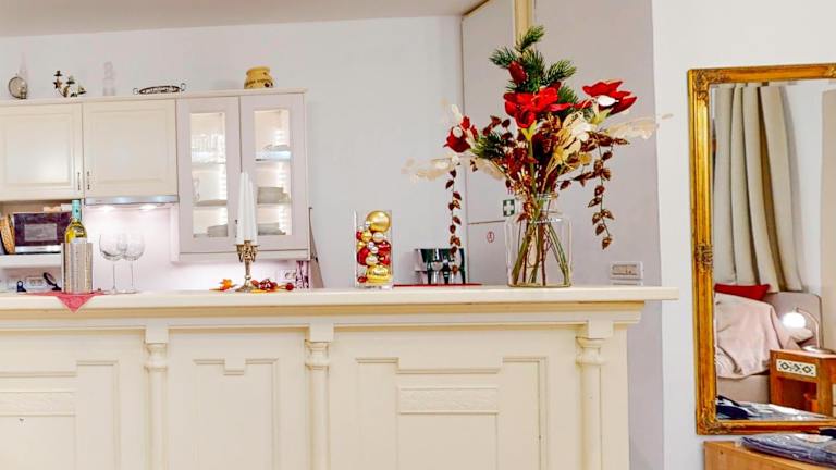 Die Ferienwohnung besteht aus einem Schlafzimmer, einem Wohnzimmer und einer voll ausgestatteten Küche mit Kühlschrank und Kaffeemaschine. Es gibt ein Badezimmer mit Dusche sowie kostenlosen Pflegeprodukten. Handtücher und Bettwäsche werden bereitgestellt.