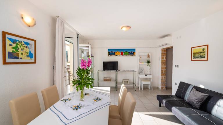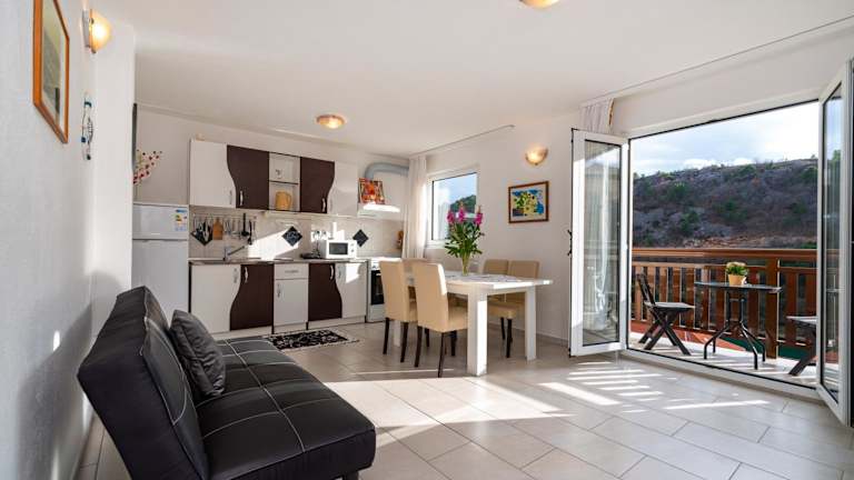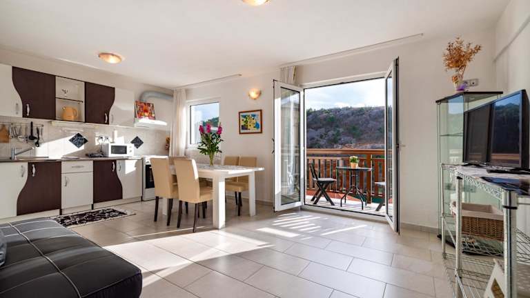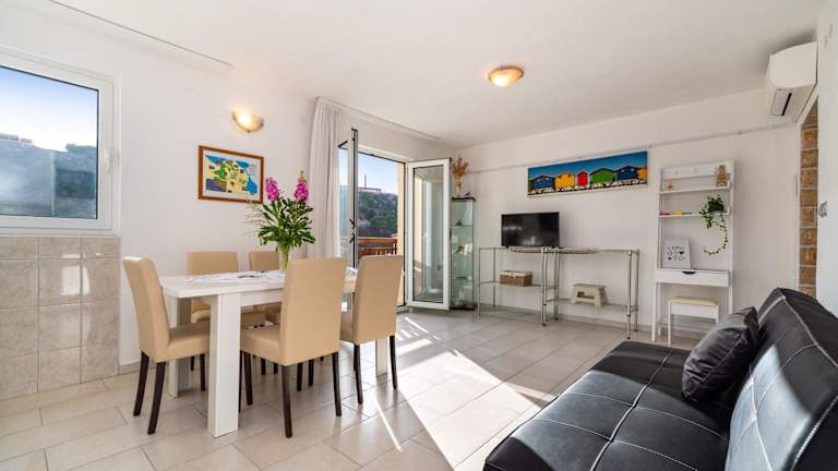 Das Apartment Mili zeichnet sich durch eine heimelige Atmosphäre aus und bietet Übernachtungsmöglichkeiten mit einer Terrasse sowie einem Balkon, von wo aus der Blick auf das Meer genossen werden kann. Die Unterkunft wird privat geführt und bietet Platz für Familien oder kleine Gruppen. Ein Mindestalter von 18 Jahren gilt für den Check-in, während Gäste jeden Alters willkommen sind.