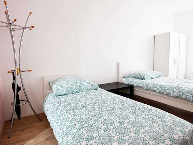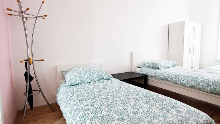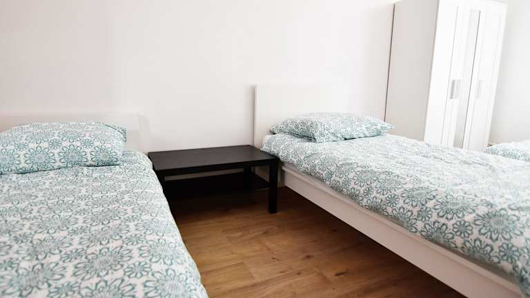 Die Ferienwohnung besteht aus 2 Schlafzimmern, einem Wohnzimmer, einer voll ausgestatteten Küche mit Kühlschrank und Wasserkocher sowie 1 Badezimmer mit Dusche. Handtücher und Bettwäsche werden bereitgestellt.