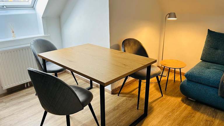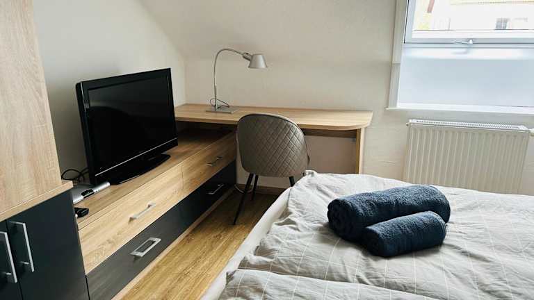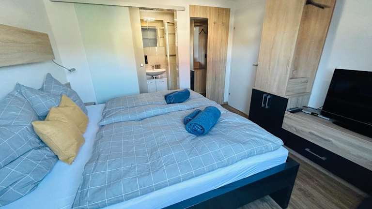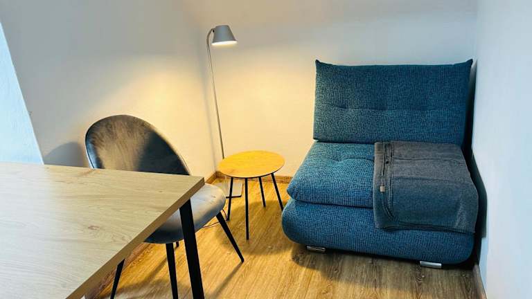 Das Apartment besteht aus einem Schlafzimmer, einem Wohnzimmer und einer voll ausgestatteten Küche mit Kühlschrank und Kaffeemaschine. Ein Badezimmer mit Dusche und Haartrockner ist ebenfalls vorhanden. Handtücher und Bettwäsche werden bereitgestellt.