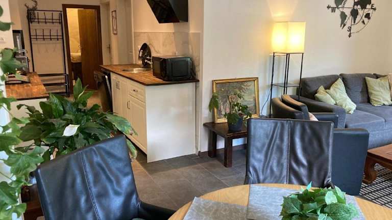 Die Ferienwohnung verfügt über 2 Schlafzimmer, ein Wohnzimmer mit TV und Satellitenkanälen, sowie eine voll ausgestattete Küche mit Geschirrspüler und Mikrowelle. Zudem gibt es ein Badezimmer mit Dusche. Handtücher und Bettwäsche werden bereitgestellt.