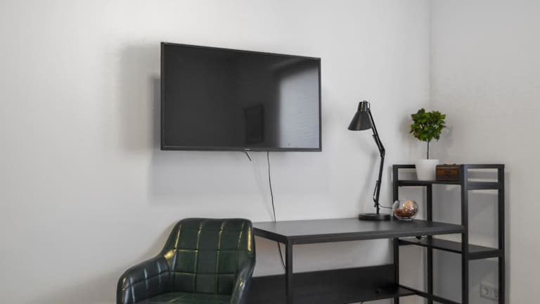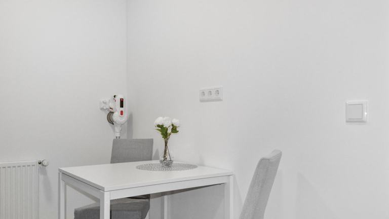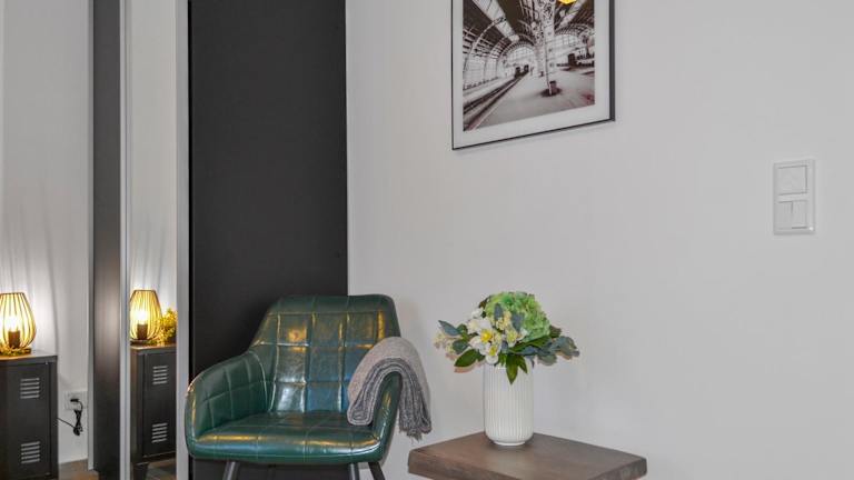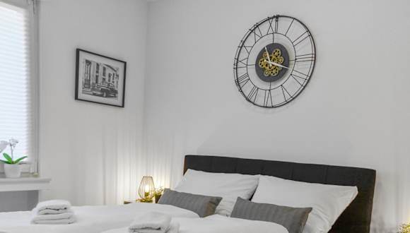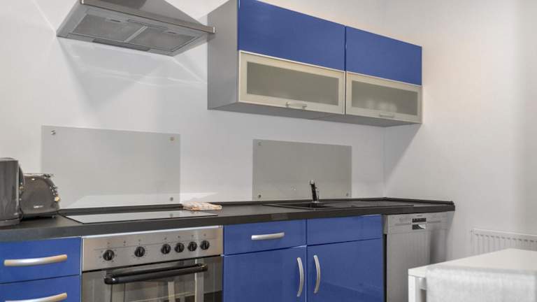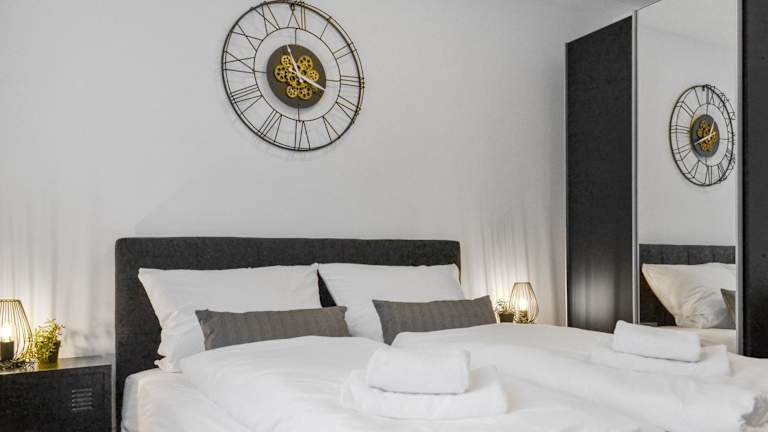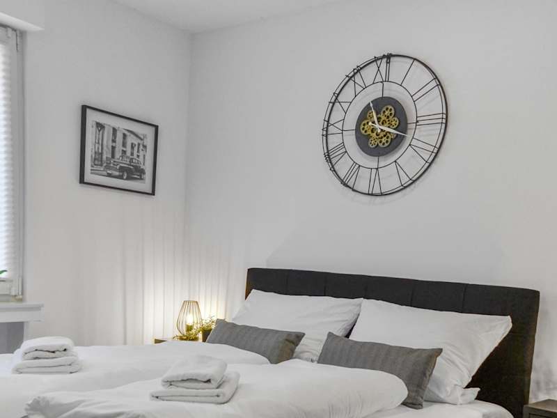 Die Ferienwohnung ist ausgestattet mit einem Schlafzimmer, einer Küche mit Kühlschrank und Geschirrspüler, einem Flachbild-TV, einem Sitzbereich sowie einem Badezimmer mit Dusche. Handtücher und Bettwäsche werden zur Verfügung gestellt.
