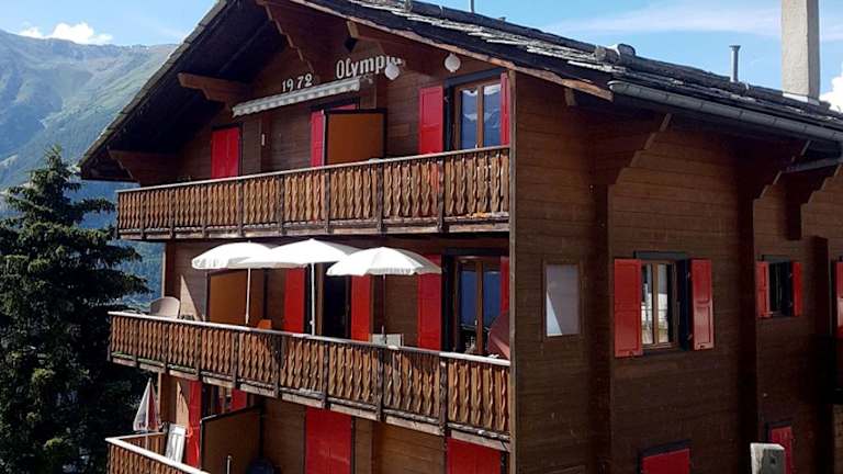 Das Apartment mit Traumblick im Haus Olympia bietet Übernachtungsmöglichkeiten mit einem Balkon und einer Kaffeemaschine. Die Ferienwohnung hat einen eigenen Garten und stellt einen kostenlosen Privatparkplatz zur Verfügung.
