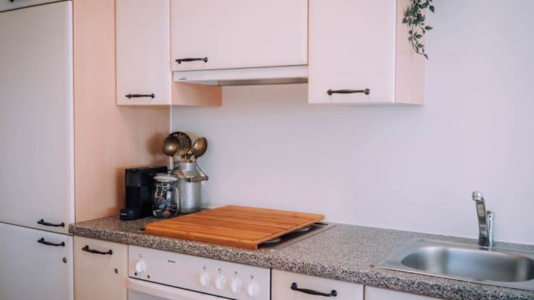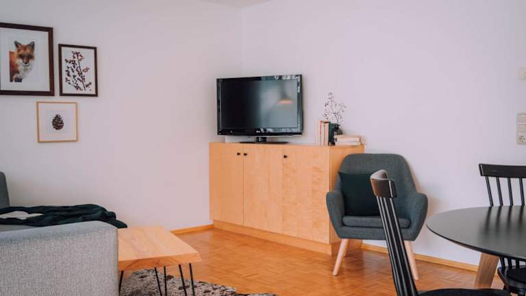 Das Apartment umfasst ein Schlafzimmer, ein Wohnzimmer mit Flachbild-TV, eine gut ausgestattete Küche mit Kühlschrank und Geschirrspüler sowie ein Badezimmer mit Badewanne. Zudem stehen Handtücher und Bettwäsche zur Verfügung, und der Balkon bietet einen schönen Blick auf die Berge.
