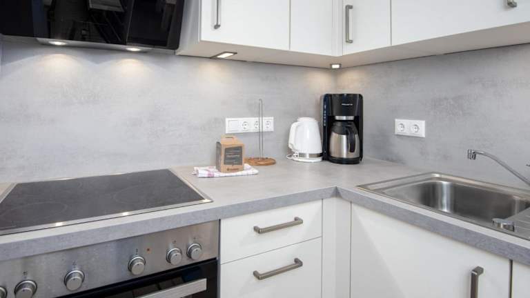 Die Ferienwohnung verfügt über 2 Schlafzimmer und ein Badezimmer mit Dusche. Ein TV mit Kabelkanälen, ein Kühlschrank und ein Geschirrspüler ergänzen die Ausstattung der gut ausgestatteten Küchenzeile. Zudem ist ein Babybett verfügbar, gegen Aufpreis.