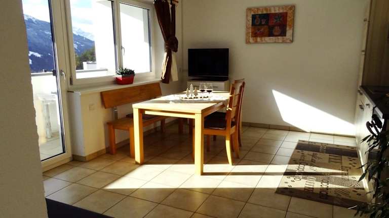 Die Ferienwohnung verfügt über einen Balkon mit herrlichem Bergblick, zwei Schlafzimmer, ein Wohnzimmer sowie eine gut ausgestattete Küche. Zudem gibt es ein Badezimmer mit Dusche und Badewanne. Handtücher und Bettwäsche werden bereitgestellt.