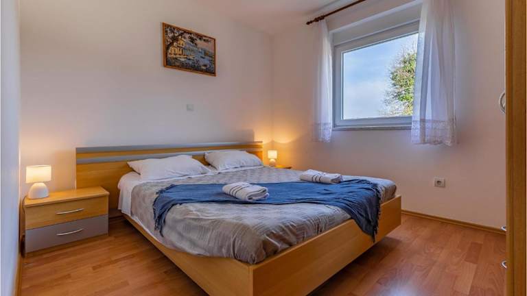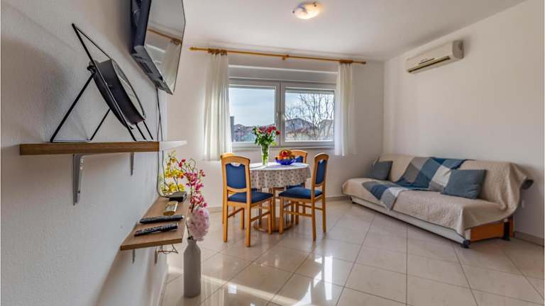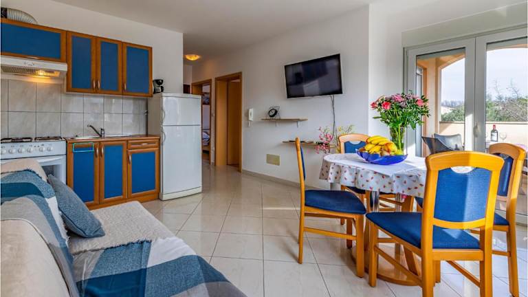 Das Apartment verfügt über zwei Schlafzimmer, ein Wohnzimmer und eine voll ausgestattete Küche. Es ist ideal für Familien oder Gruppen geeignet. Die Ausstattung beinhaltet zudem einen TV und Gartenmöbel. WLAN ist nicht erwähnt.