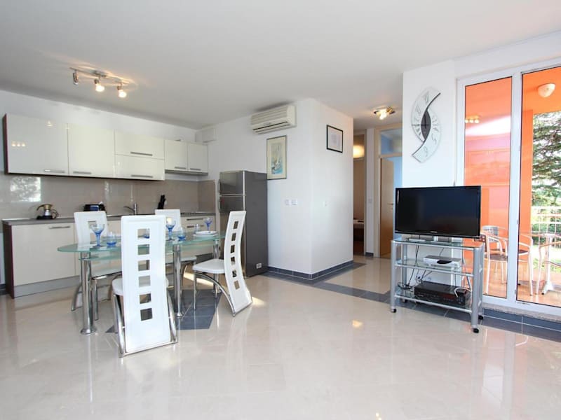 Das Apartment Nautica in Novigrad ist die perfekte Unterkunft für einen entspannten Urlaub am Meer. Mit seiner idealen Lage direkt an der Uferpromenade und nur wenige Schritte vom Yachthafen entfernt, bietet es eine komfortable Ausstattung und einen herrlichen Meerblick vom möblierten Balkon aus. Das Apartment ist klimatisiert und verfügt über kostenfreies WLAN. In der voll ausgestatteten Küche können Sie Ihre eigenen Mahlzeiten zubereiten und im Wohnbereich mit Schlafsofa entspannen. Ein Kinderspielplatz befindet sich in unmittelbarer Nähe und ein Lebensmittelgeschäft sowie ein Restaurant sind nur wenige Meter entfernt. Fahrräder können in der Nähe gemietet werden, um die Umgebung zu erkunden. Der Busbahnhof von Novigrad ist ebenfalls leicht zu erreichen. Die Stadt Poreč und der Flughafen Pula liegen in kurzer Entfernung zur Unterkunft.