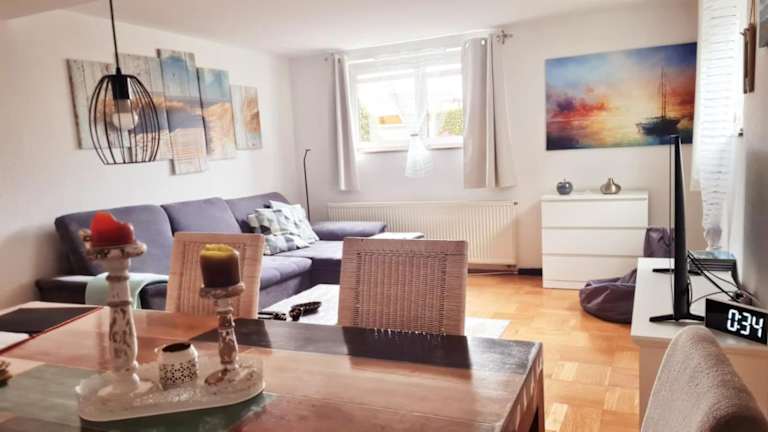 Die Ferienwohnung besticht durch ihre umfassende Ausstattung. Sie umfasst eine Küche mit Kühlschrank, Geschirrspüler und Ofen, ein Wohnzimmer mit Sitz- und Essbereich, sowie zwei Schlafzimmer und zwei Badezimmer, ausgestattet mit Dusche und Badewanne. Handtücher und Bettwäsche können gegen eine Gebühr ausgeliehen werden oder sind von den Gästen selbst mitzubringen. Die Unterkunft verfügt zudem über Nichtraucherzimmer und Familienzimmer.