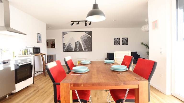 Das Apartment "New York" in Erftstadt bietet eine Fläche von 91 qm und besteht aus drei Zimmern. Es hebt sich durch einen Gartenblick, eine Terrasse und einen Balkon hervor. Die Unterkunft dient als geeignete Wahl für Familienferien oder Business-Trips und wird von einem privaten Gastgeber geführt.