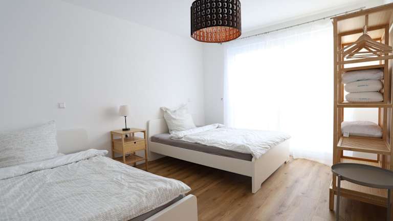 Das Apartment umfasst zwei Schlafzimmer und ein Wohnzimmer sowie ein Badezimmer mit Dusche und Haartrockner. Handtücher und Bettwäsche werden bereitgestellt. Die Zimmer sind schallisoliert, Nichtraucherzimmer sind verfügbar, und es gibt eine Heizung. Auch eine Parkiermöglichkeit vor Ort ist vorhanden.