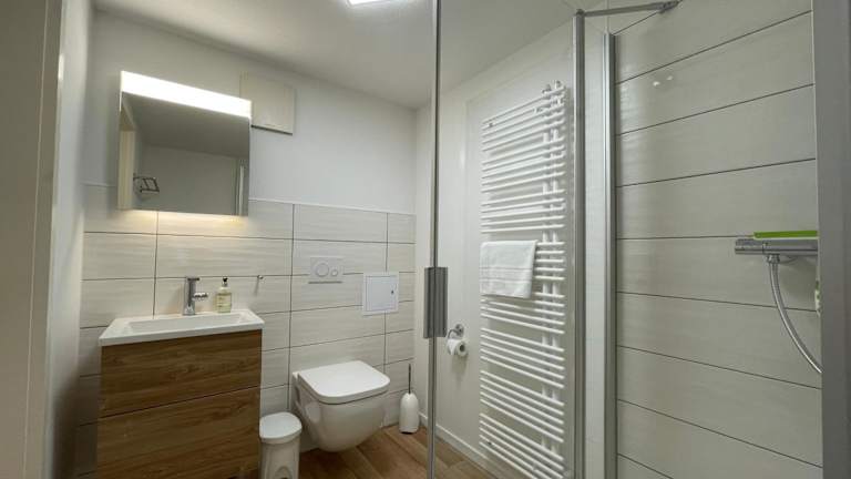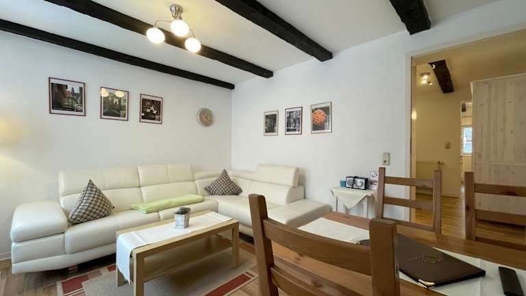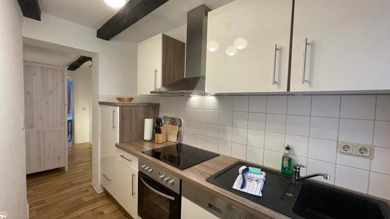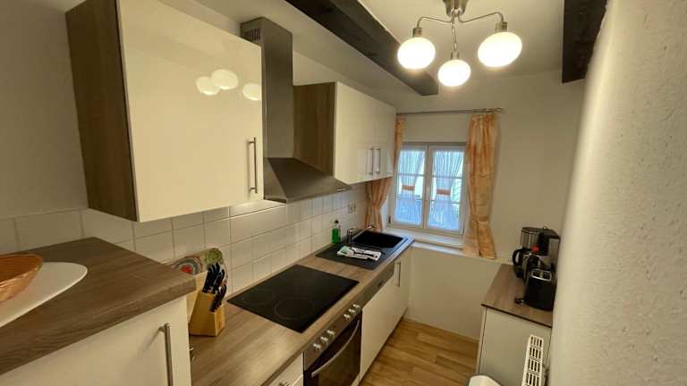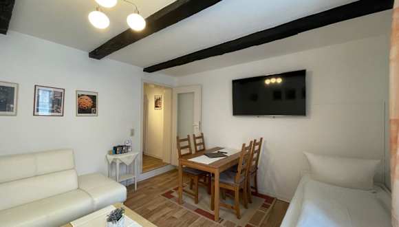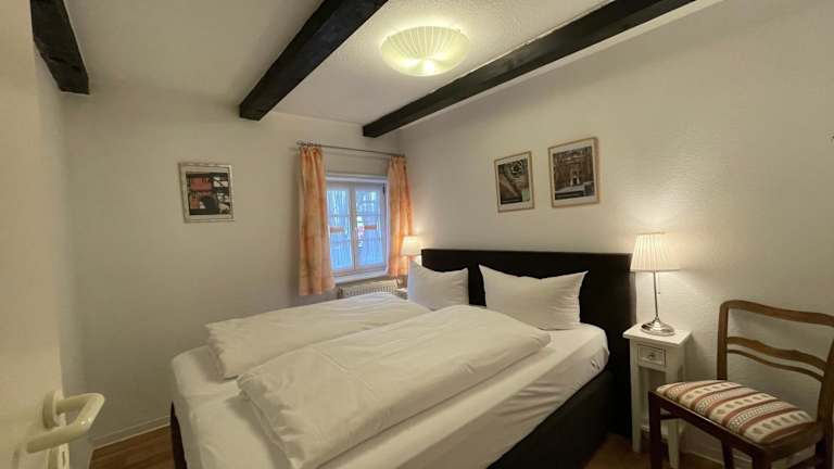 Die Ferienwohnung besteht aus einem Schlafzimmer und einem Wohnzimmer. Die Küche ist voll ausgestattet mit Kühlschrank und Geschirrspüler. Handtücher und Bettwäsche werden bereitgestellt.