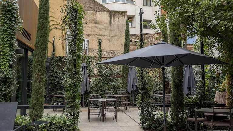 Das Hotel verfügt über eine Gartenterrasse mit einem kleinen Pool, auf der Sie sich entspannen und die Sonne genießen können. Das freundliche Personal an der Rezeption steht Ihnen auch gerne zur Verfügung, um Informationen über Girona und die nahe gelegene Costa Brava zu geben.