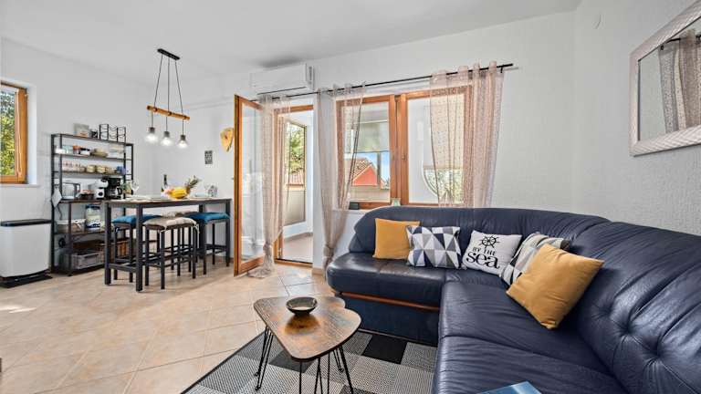 Das Apartment O'live Rabac Istra bietet eine komfortable Unterkunft mit Meerblick und umfasst eine Terrasse sowie einen Balkon. Die Unterkunft ist klimatisiert und besteht aus zwei Schlafzimmern, einem Wohnzimmer, einer voll ausgestatteten Küche und einem Badezimmer.